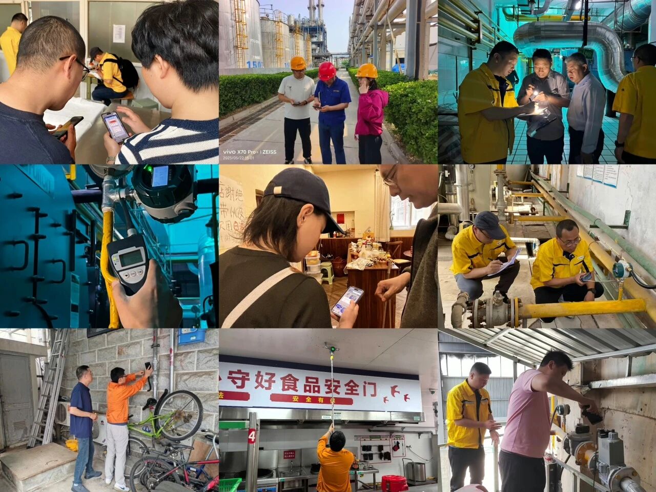 2025年5月,在迎接全国第24个“安全生产月”之际,新智聚安发起“2025聚安工商服全国安全检查行动”,以 "智能赋能+全员参与"的创新模式,将安全生产月“人人讲安全、个个会应急”的主题化为智能驱动的生动实践。此次行动在江苏、浙江、河南、河北、安徽、广东六省十余个重点城市展开,抽查重点工商服客户近百家,掀起全员参与、群防群控的安全治理新浪潮。