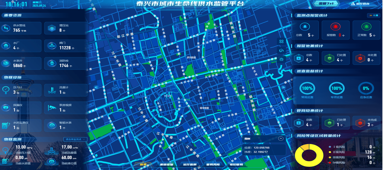 平台落地后,泰兴的城市安全治理成效显著。目前已覆盖3984公里管线、194公里道路、134座桥梁、31.8万用户、1513个小区,以及燃气、供水、排水等多城市应用领域企业,累计处理17万+条安全检测数据,督办500+条风险信息,推动城市安全管理从“被动应对”走向“主动防控”,从“分散管控”到“协同共治”。以燃气老旧管网改造为例,平台投用后,进度实时可查,告别“凭经验估算”时代,而且第三方施工破坏管网的风险降低,平台自动共享施工线索,提醒各权属单位提前介入防护。