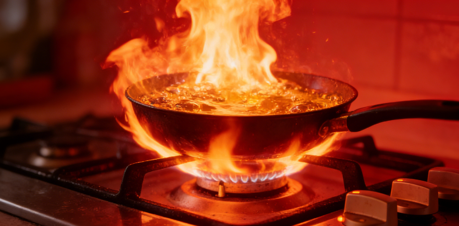 油锅无常:油温失控易导致油锅起火,不能及时扑灭